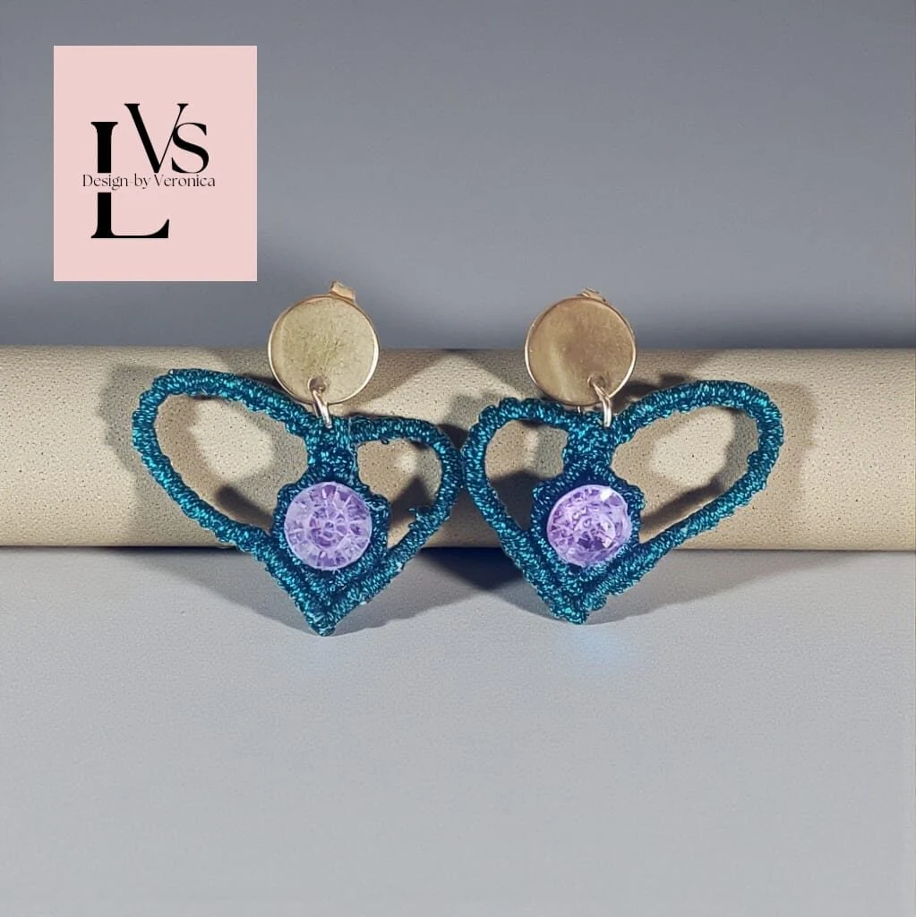 Μακραμέ Σκουλαρίκια Καρδιές με Κούμπωμα Ανοξείδωτο Ατσάλι – Red, Petrol & Grey Pink