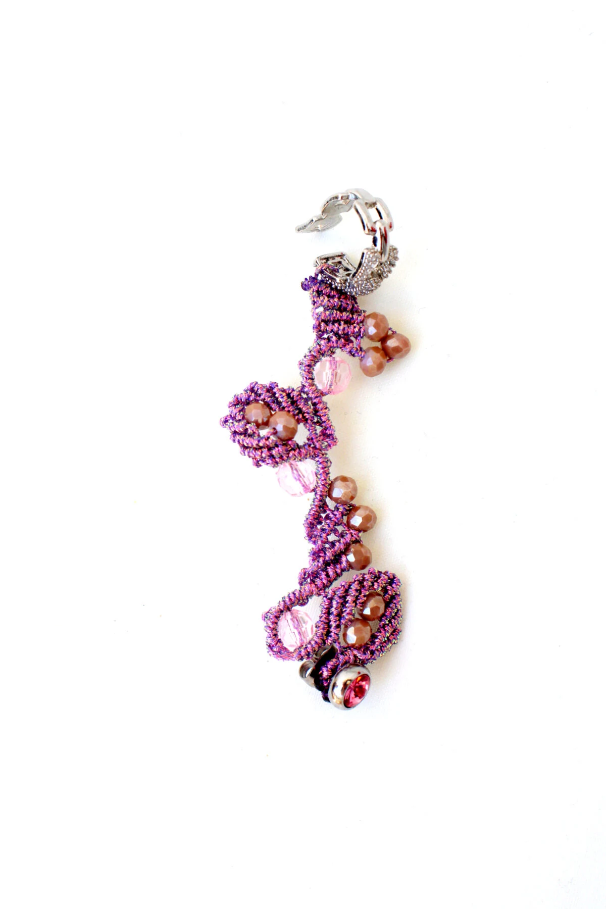 Ένα κόσμημα που ξεχωρίζει χωρίς υπερβολές. Αυτό το χειροποίητο cuff σκουλαρίκι από μακραμέ είναι φτιαγμένο με προσοχή στη λεπτομέρεια και στολισμένο διακριτικά με μικρά, λαμπερά κρύσταλλα που παίζουν με το φως. Το μεταλλικό του στοιχείο σε απόχρωση του purple προσθέτει μια διακριτική πολυτέλεια και δίνει μια ιδιαίτερη χρωματική πινελιά που τραβάει διακριτικά το βλέμμα.